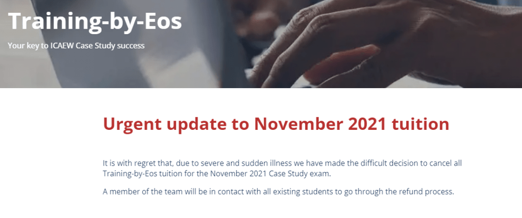 An early morning phone call on Friday 1 October resulted in this message being added to the Training-by-Eos (the tuition company that I co-founded and part own) website: